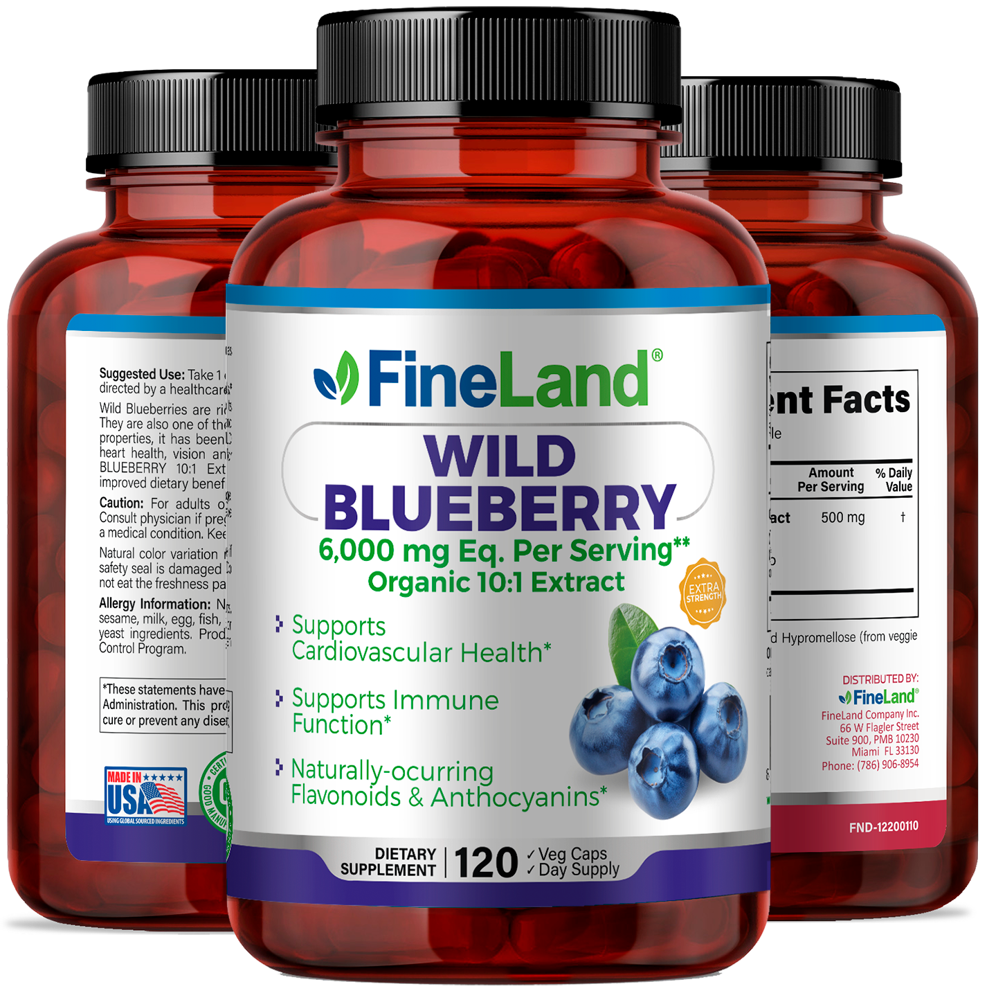 FineLand’s premium extract delivers 6,000 mg of organic wild blueberry concentrate (10:1 ratio) per serving. Each bottle provides a convenient 4-month supply of easy-to-take vegan capsules.
